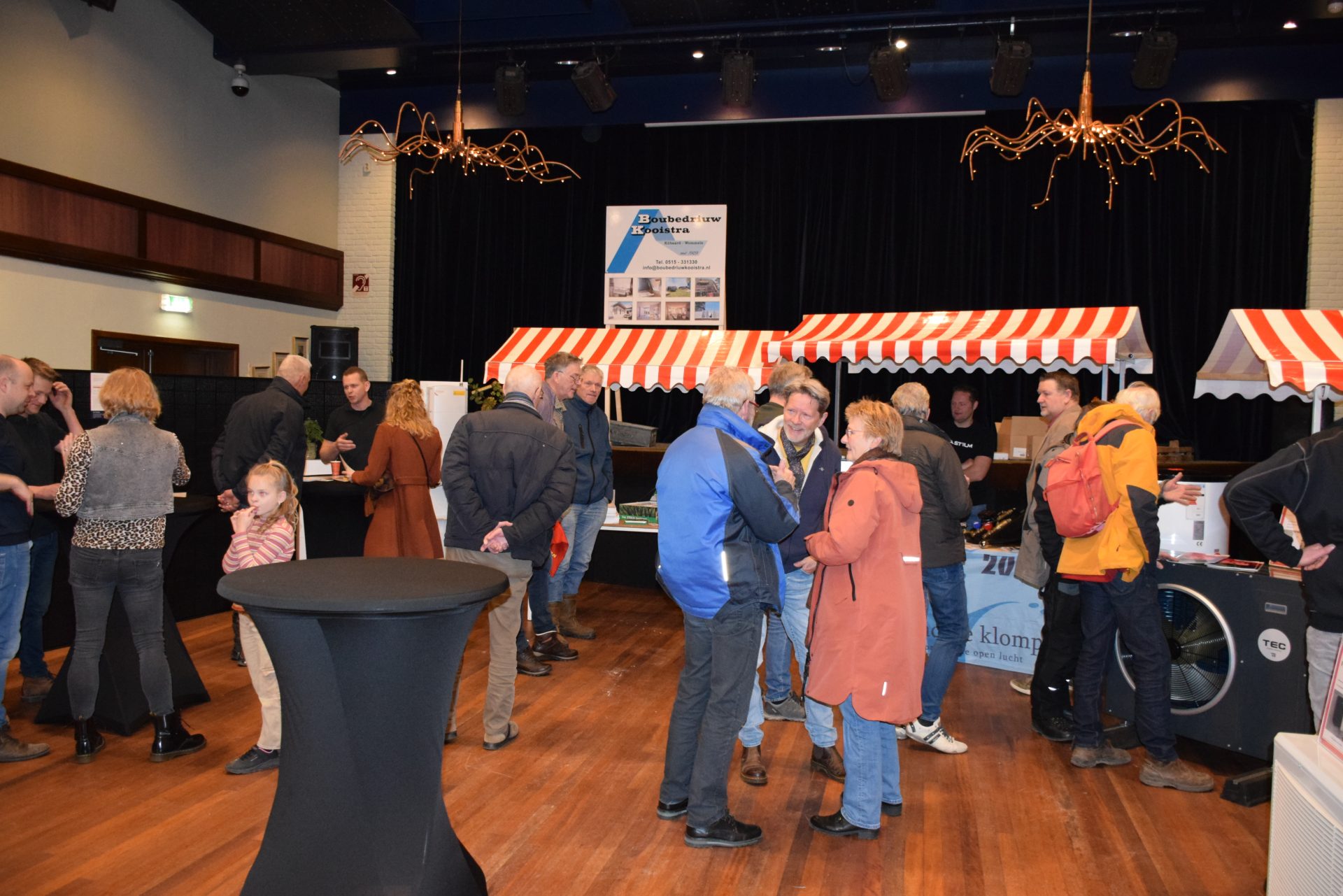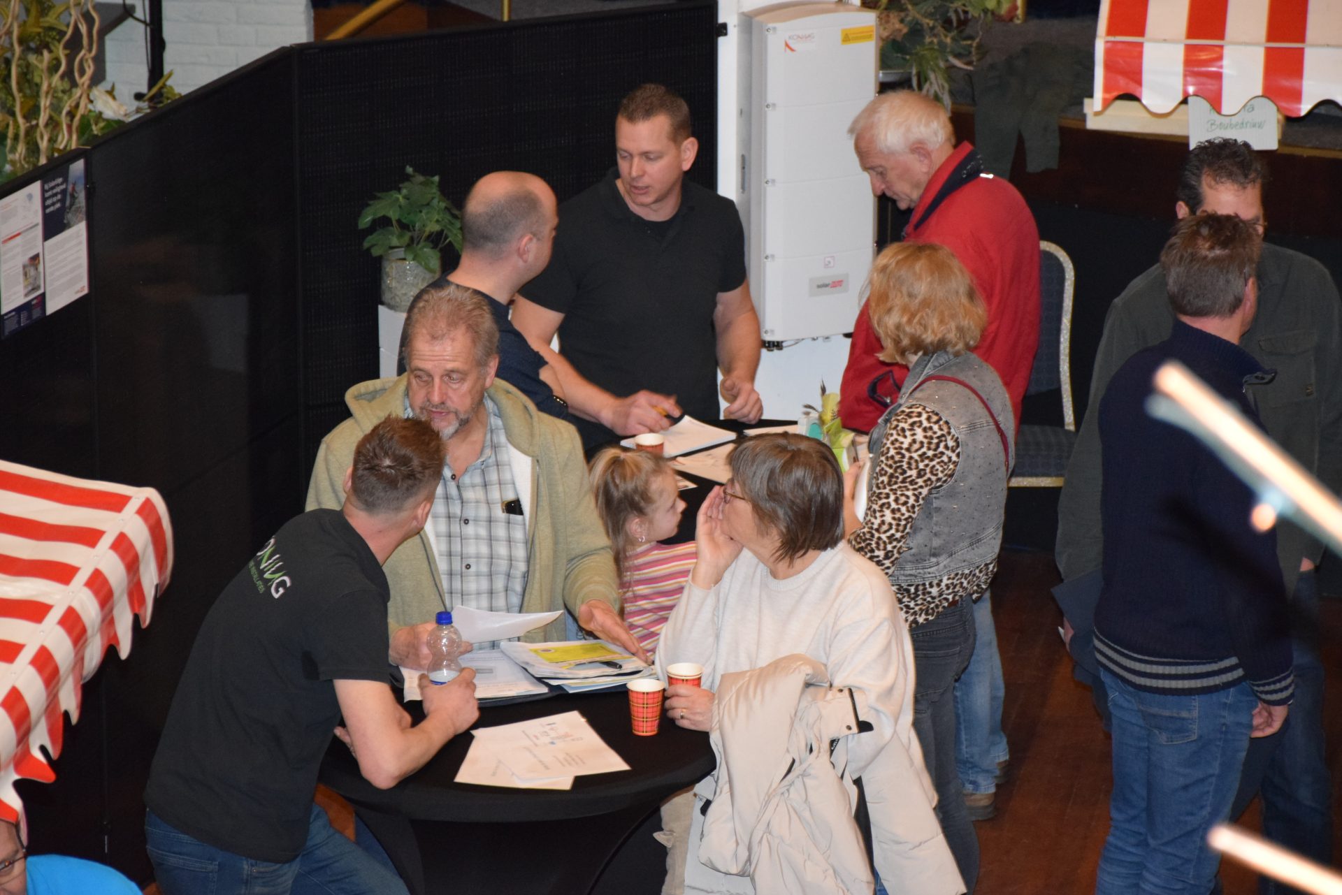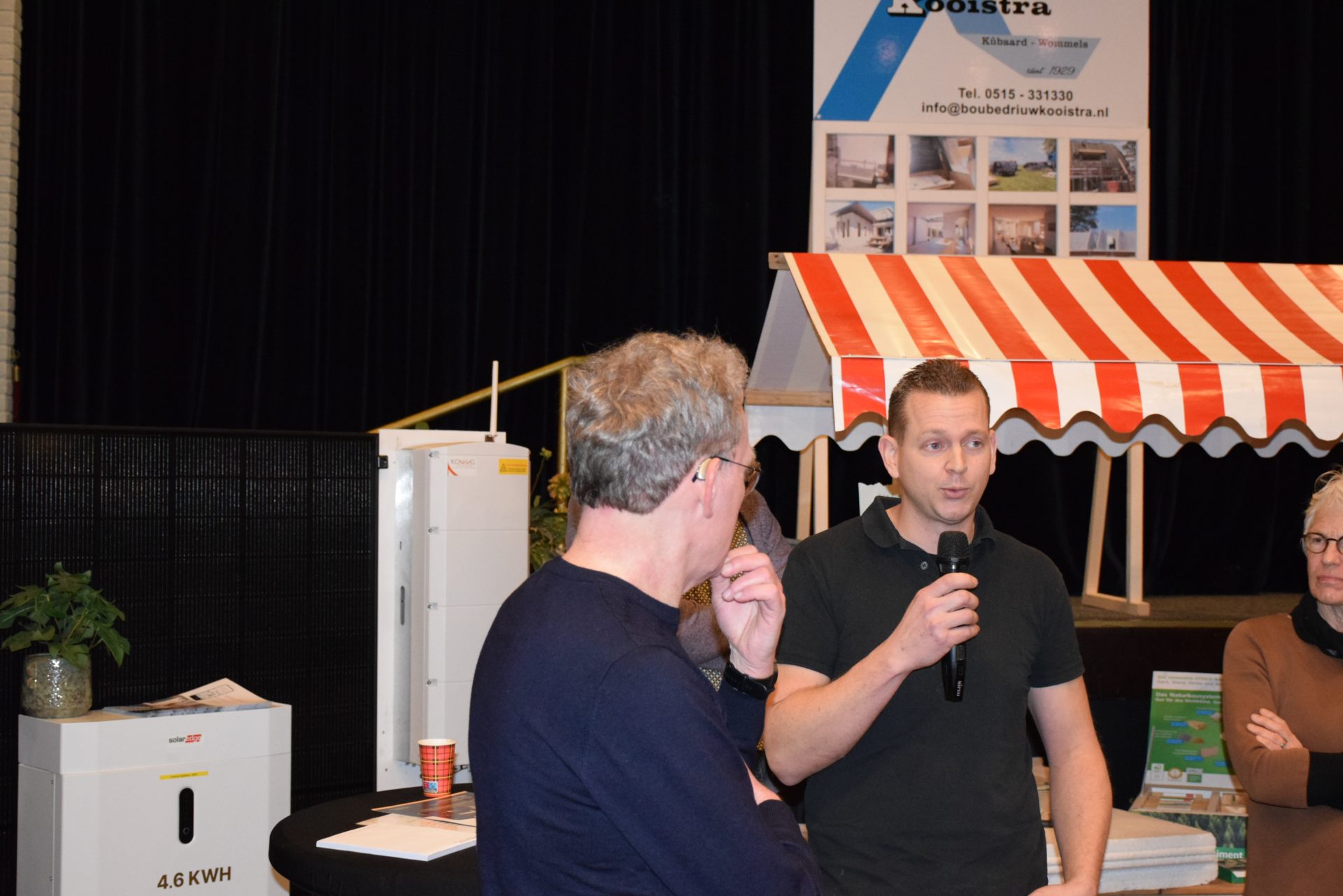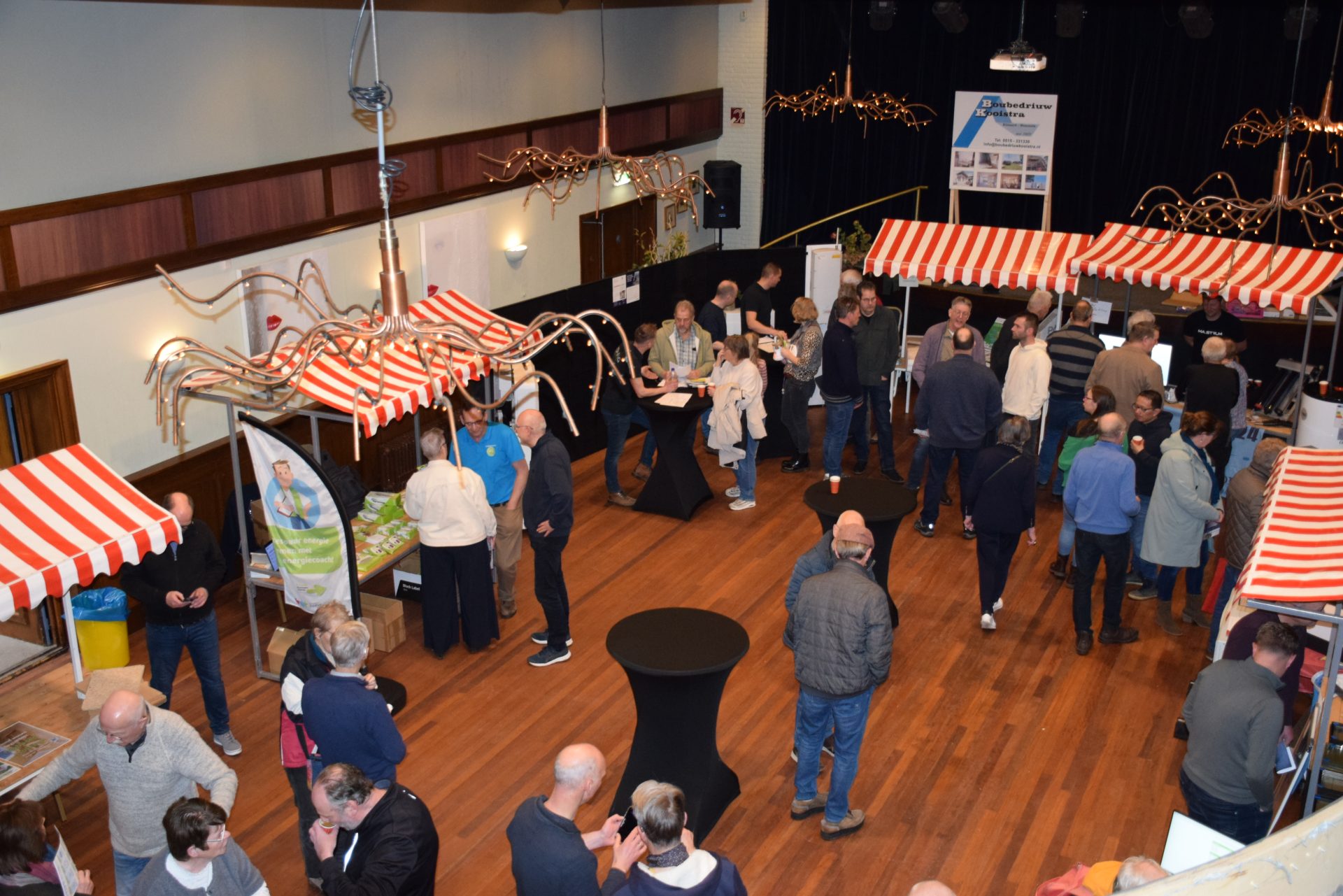 Standhouders waren: de Smit Isolatiegroep met diverse isolatiematerialen, De Wolk Glas met verschillende soorten isolerend glas, de Friese Milieufederatie met info over biobased isolatiemateriaal, Bouwbedrijf Kooistra Kûbaard/Wommels met duurzaam bouwen, Installatiebedrijf Lukkes met warmtepompen, zonnepanelen en thuisbatterijen, Koning Installatie met thuisbatterijen en zonnepanelen, Atsun over slimme energieoplossingen, Confin van Pier Zwerver uit Wommels over energieadvies en energielabels, Henk Zegwaard van Betaalbaar Gasloos over voordelig vervangen van CV door warmtepomp, Zwembad De Klomp over heatpipes waar ze tegenwoordig het zwembadwater mee verwarmen, de Gemeente SWF met energiecoaching en info over subsidies en de WEK met energiecoaching, warmtebeeldcamera en energieadvies.