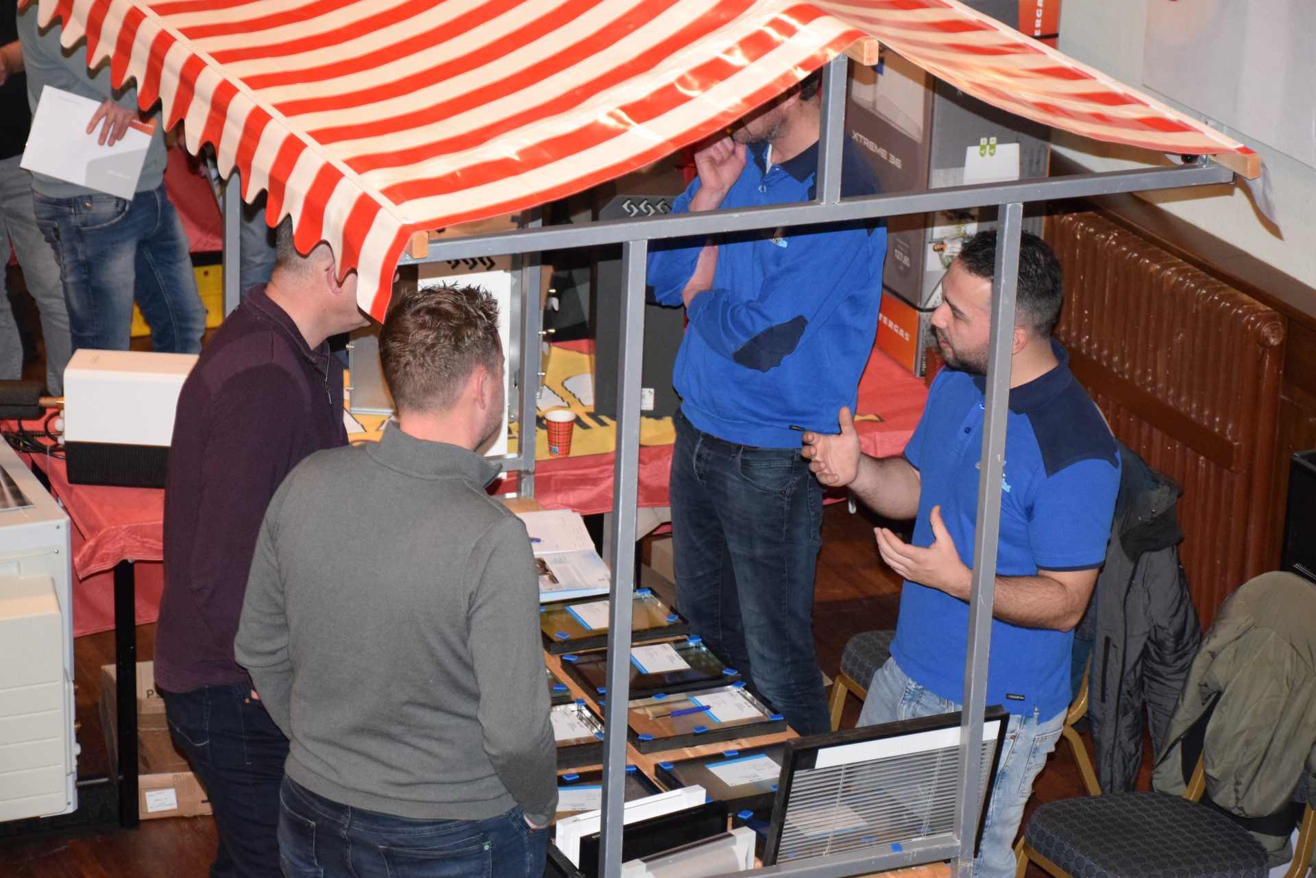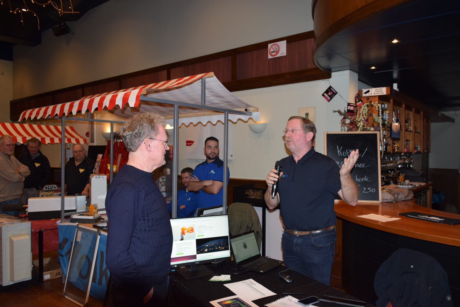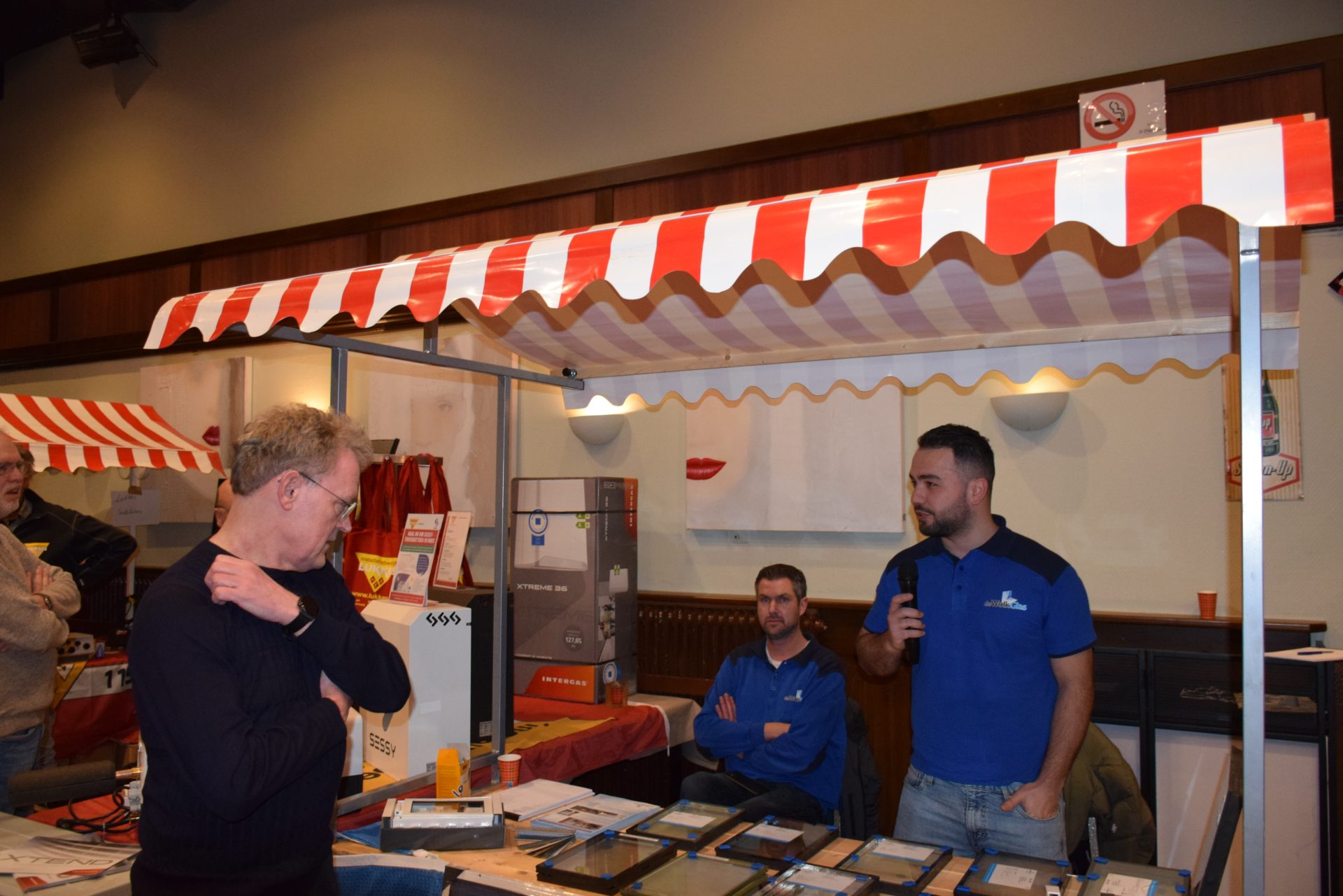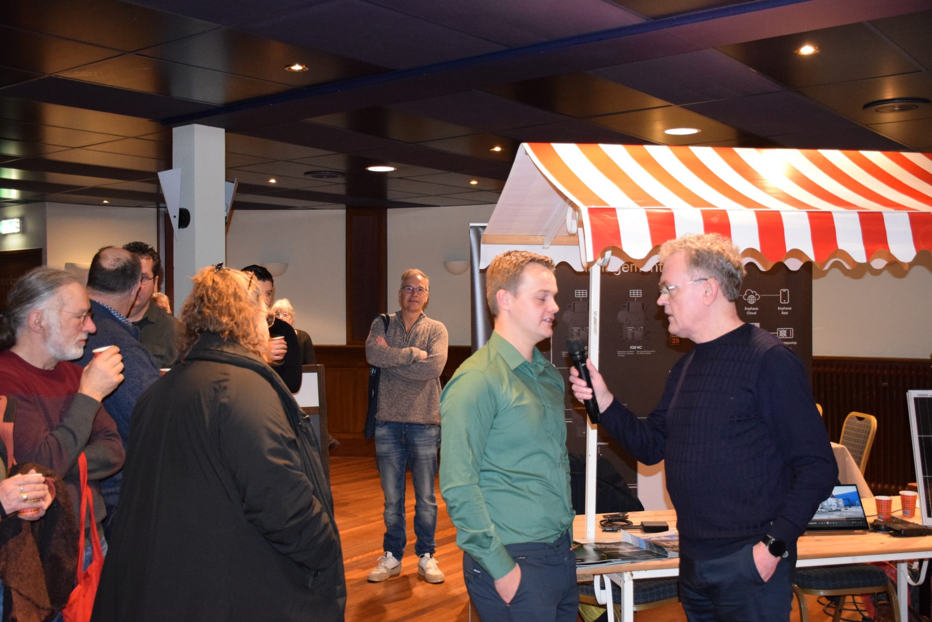 Standhouders waren: de Smit Isolatiegroep met diverse isolatiematerialen, De Wolk Glas met verschillende soorten isolerend glas, de Friese Milieufederatie met info over biobased isolatiemateriaal, Bouwbedrijf Kooistra Kûbaard/Wommels met duurzaam bouwen, Installatiebedrijf Lukkes met warmtepompen, zonnepanelen en thuisbatterijen, Koning Installatie met thuisbatterijen en zonnepanelen, Atsun over slimme energieoplossingen, Confin van Pier Zwerver uit Wommels over energieadvies en energielabels, Henk Zegwaard van Betaalbaar Gasloos over voordelig vervangen van CV door warmtepomp, Zwembad De Klomp over heatpipes waar ze tegenwoordig het zwembadwater mee verwarmen, de Gemeente SWF met energiecoaching en info over subsidies en de WEK met energiecoaching, warmtebeeldcamera en energieadvies.