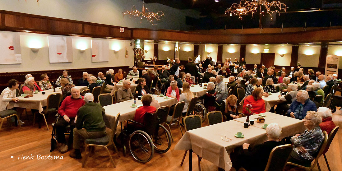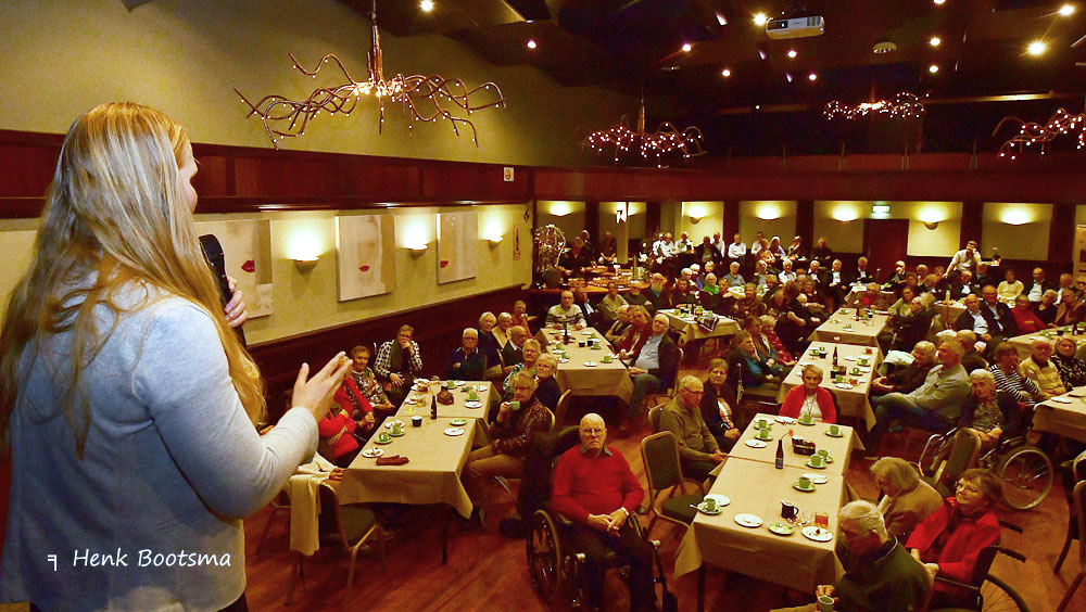 En middeis noch de senioarenmiddei yn in bomfol Dielshûs. Liesette Bruinsma fertelde in boeiend en posityf ferhaal oer topsport en omgean mei tsjinslaggen en dernei koenen de Freulesjongers oan de bak.