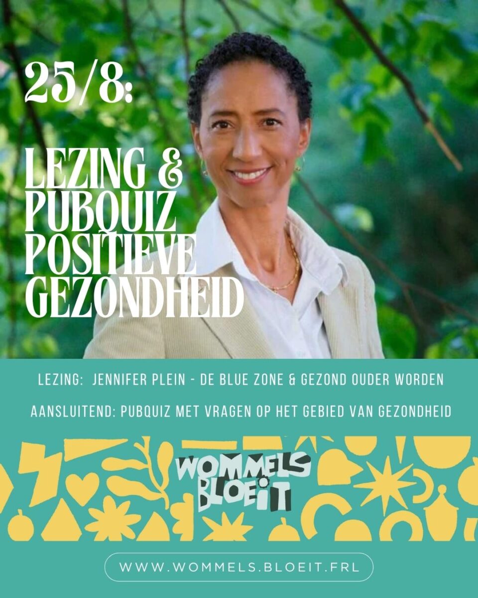Gezondheid is een belangrijk thema van de bloeiweek. Veel obesitas, diabetes, hart- en vaatziekten, etc. Wellicht te voorkomen of te verhelpen door gezond (niet bewerkt) voedsel, beweging, sociaal contact. Blue Zone Wommels. Je kunt je laten voorlichten door deskundigen (ook op de bloeimarkt) en meedoen aan de diverse beweegactiviteiten. En op verkenning gaan naar duurzaamheid, moestuinen, de natuur in de nacht, kunst, verhalen, dans en muziek. En dan het liefst samen, met elkaar.