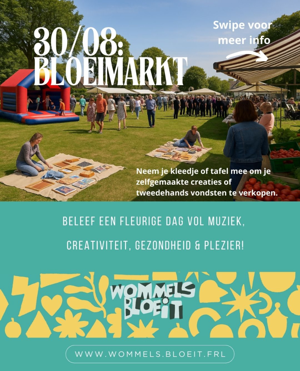 Morgenochtend start de bloeiweek van Wommels (ihkv Fryslân Bloeit) in de Jachthaven om 07:00 uur: natuurzwemmen met Dukke. Morgenavond in It Dielshûs een lezing over gezondheid en een leuke pubquiz en dinsdagochtend een drie informatieve rondleidingen door de Jumbo Kooistra Wommels. Verder komende week allerlei leuke activiteiten, zie de plaatjes en/of Website/FB/Insta Wommels Bloeit.